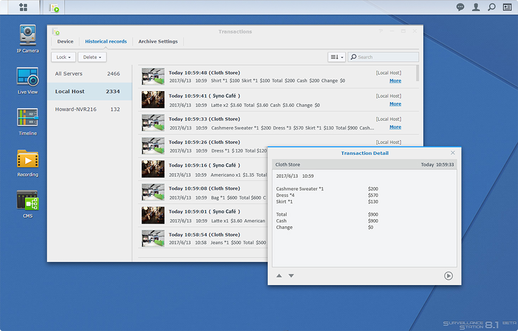 La grabación está programada 24/24 y 7/7, proporcionando una monitorización continúa y completa de todo su negocio. 除了, cada servidor de grabación envía automáticamente el flujo de cámara en tiempo real de 2.000 cámaras en baja resolución para ahorrar ancho de banda en el NAS host CMS, RS18017xs+.