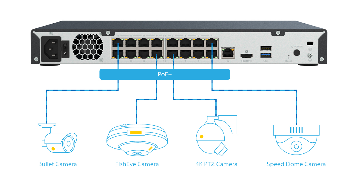 - 具有4K HDMI输出, 让您享受清晰的图像观看 16 同时来自多个频道的 MP.
